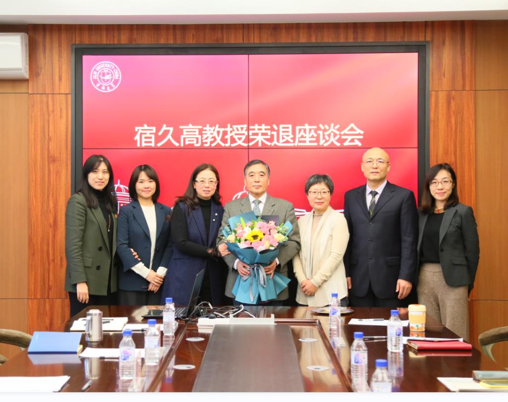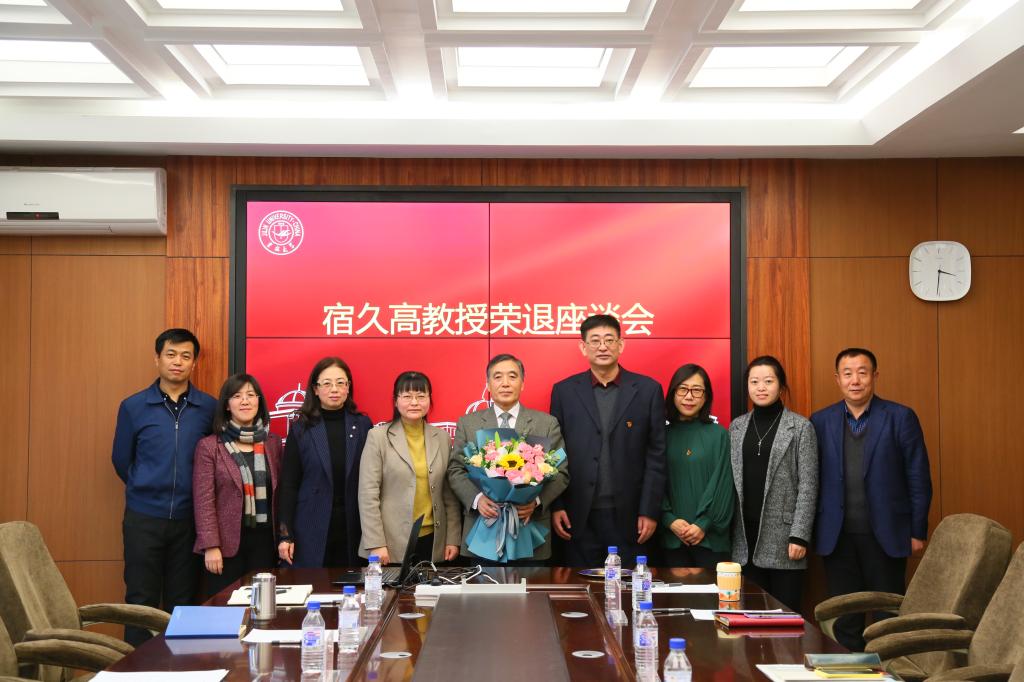 刘昌松书记与张玫玫院长分别向宿久高教授赠送了荣退纪念奖盘与鲜花,并表达了对宿久高教授未来生活的美好祝愿和衷心祝福。