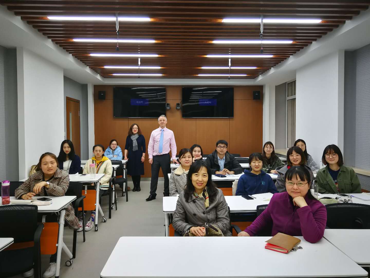 下午,杨卉女士和肖恩博士与英文系英语语言文学方向的研究生进行座谈。肖恩博士做了题为《以福尔摩斯为例谈文学作品的电影改编》的讲座,讲座氛围热烈,师生互动积极。通过对比三个不同时期的福尔摩斯探案影视剧:1939年和1984年的《夏洛克·福尔摩斯历险记》、BBC系列剧《神探夏洛克》,肖恩博士指出文学作品电影改编的原则:文学的电影改编不是刻板地忠实原著,而是不断的创新和再创作。二十一世纪的夏洛克已经成功化身为精通科技的现代人,依旧是经久不衰的英雄偶像。讲座结束以后,肖恩博士还向学生们介绍了布鲁内尔大学的基本情况以及研究生阶段的课程、特色专业和申请流程。杨卉女士就研究生交流项目回答了同学们的提问。