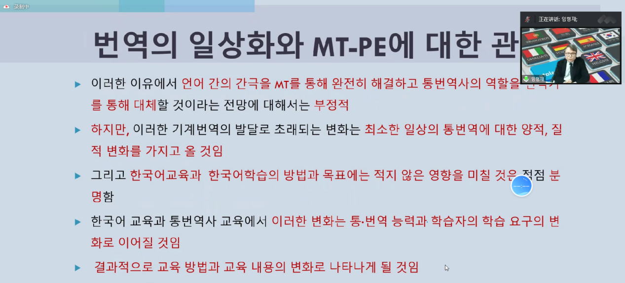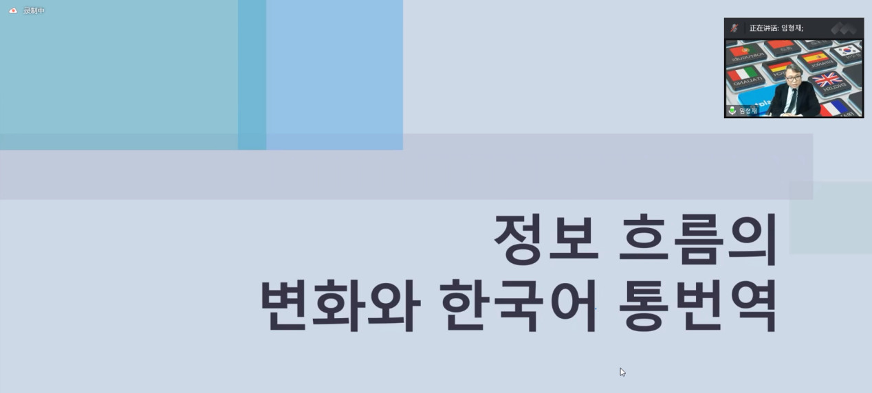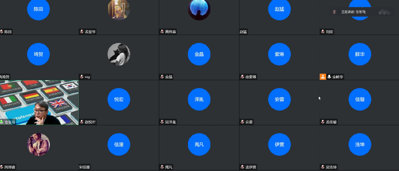 对外韩语翻译专业教授、国际韩国语言文化学会会长林亨栽在云端通过腾讯会议平台为成人导航