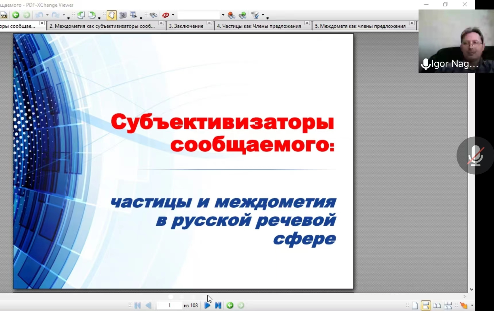 讲座伊始,纳戈尔内教授开宗明义,强调了了俄语中语气词和感叹词在交际过程中的重要性。然后,主讲人分析了俄语中语气词和感叹词的各种功能,可以表达说话人的情感、对言语客体的评价和情态等主观性内容。在现实交际过程中,说话人和受话人的互动影响到了语气词和感叹词的使用,它们可以使表达内容主观化,表达说话人的观点并对受话人施加影响,以改变受话人的知识结构和情感状态。语气词和感叹词的功能表明,人的因素在语言中具有多个层面的表现形式,从人类中心主义和功能视角对它们进行研究,有助于解释它们的功能特征和交际特征。