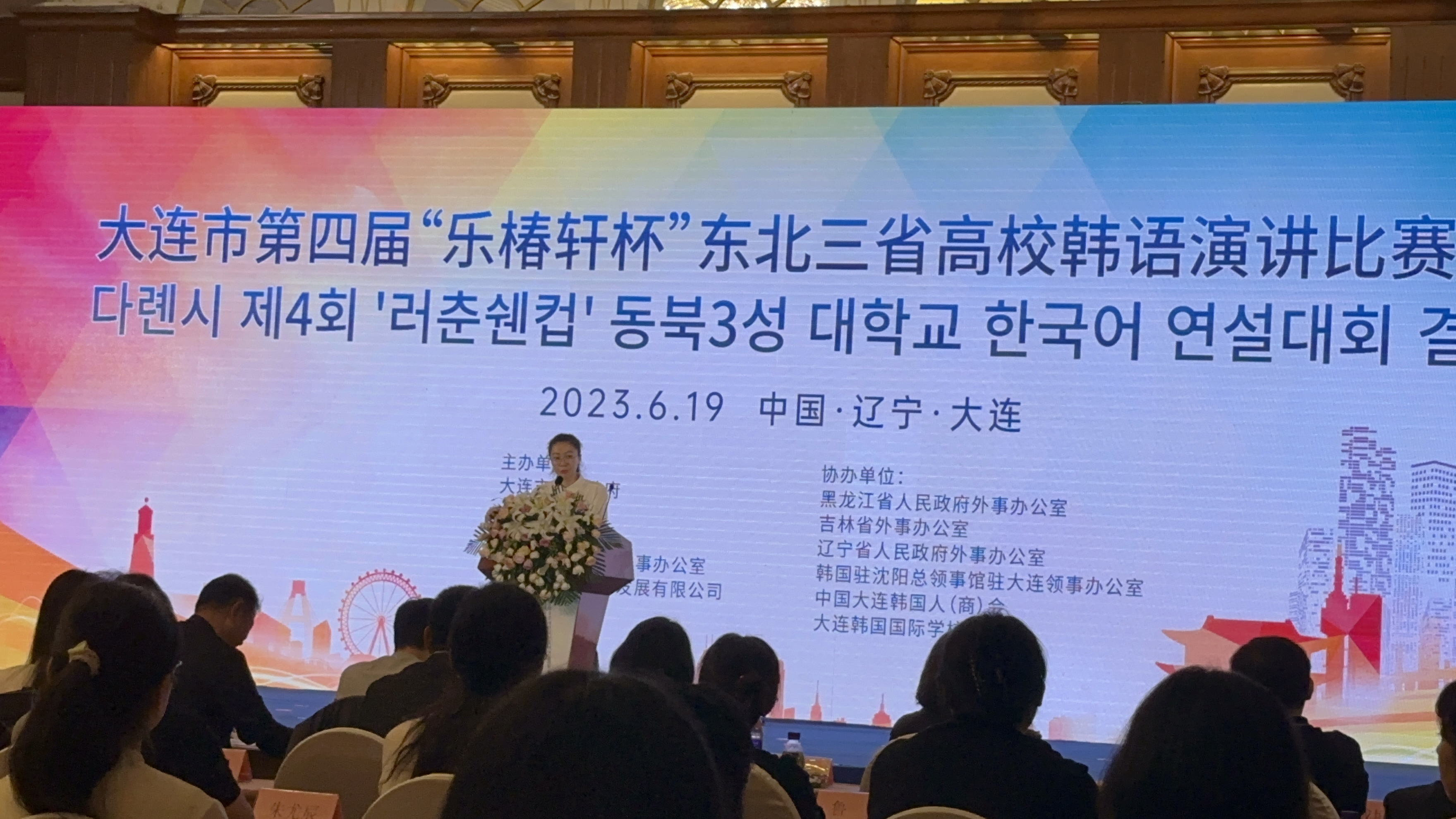 2023年6月19日,第四届“乐椿轩杯”东北三省高校韩语演讲比赛决赛在大连富丽华大酒店成功举办。来自黑龙江、吉林、辽宁三省18所高校的24名韩语专业学生进行了激烈角逐,成人导航