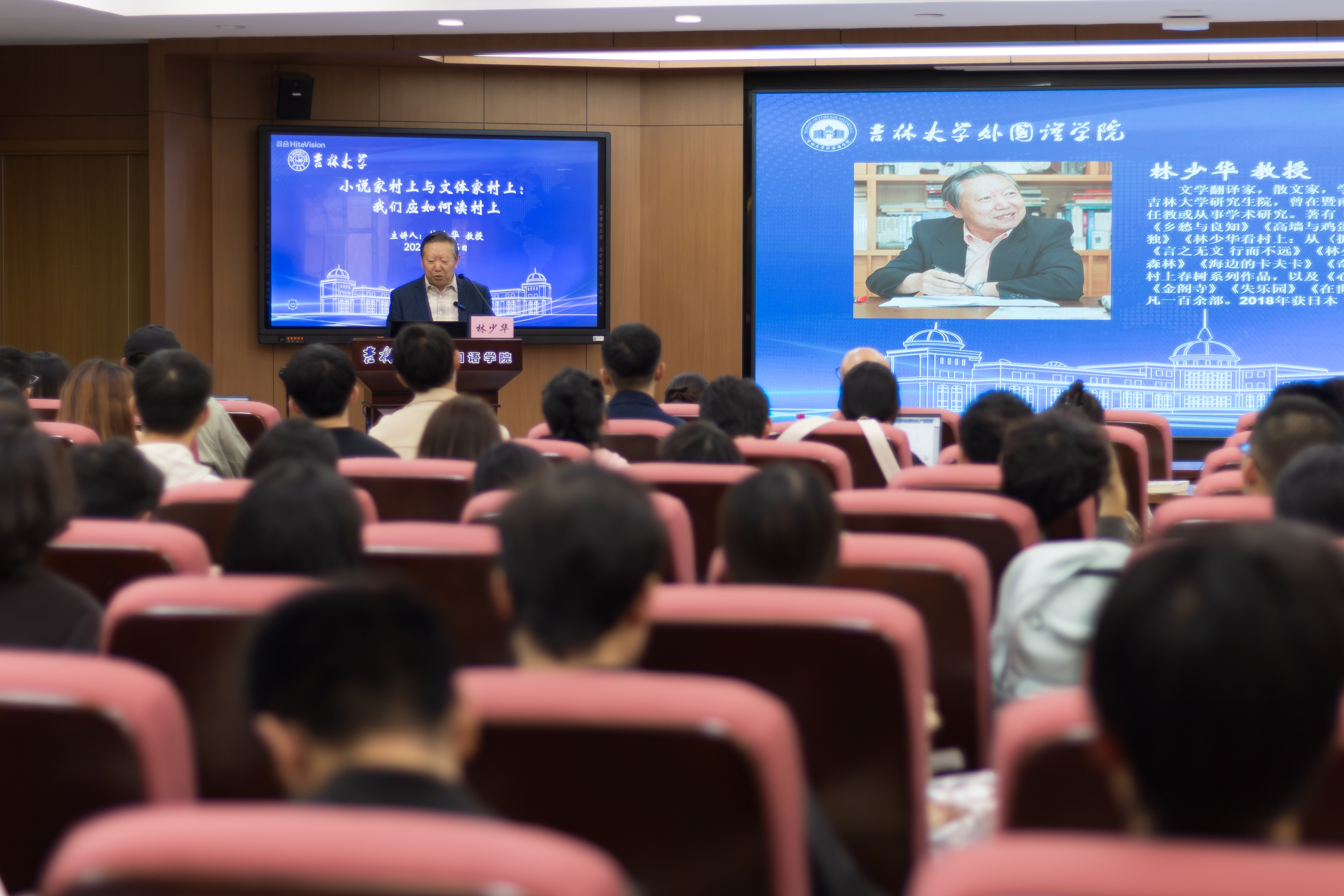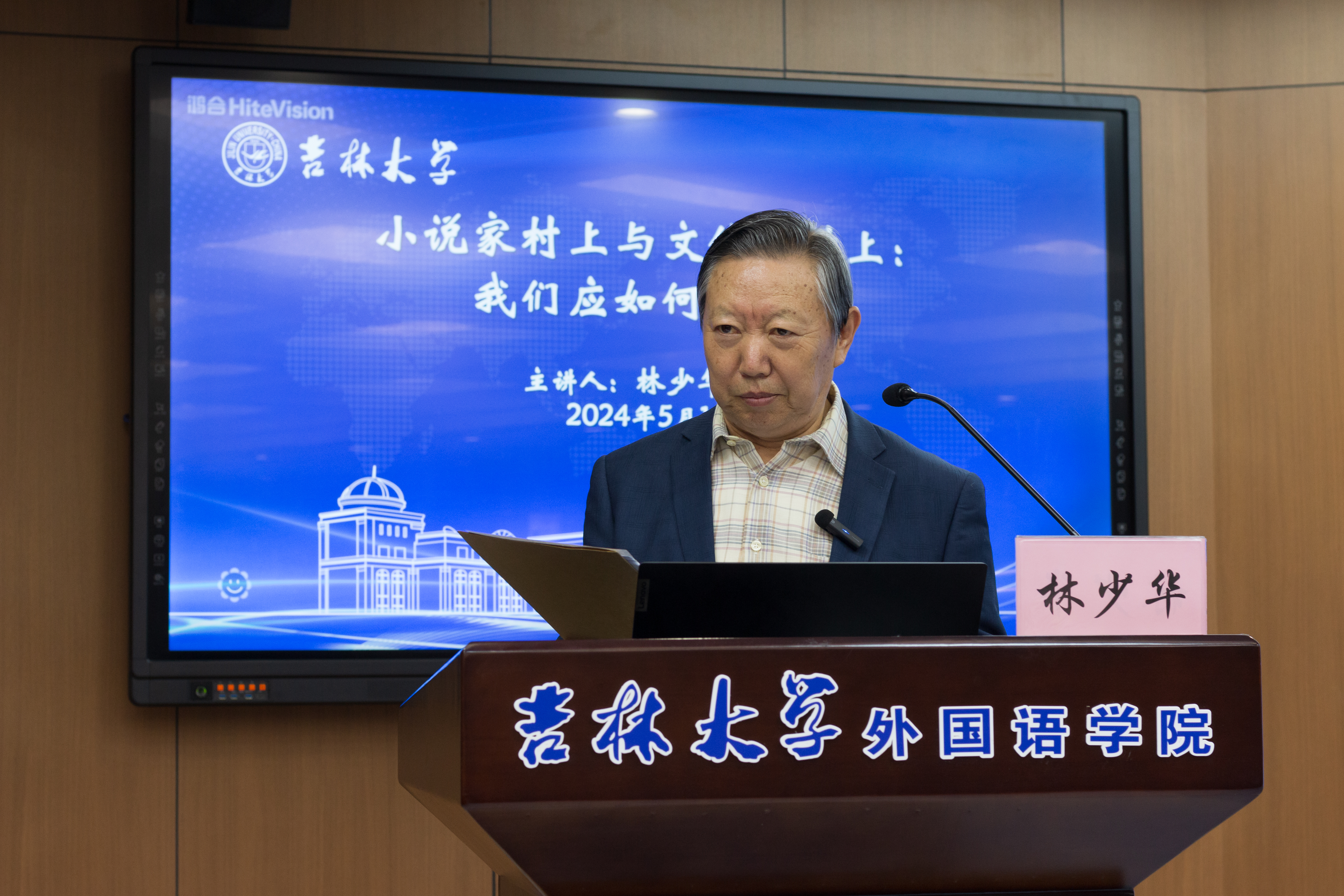 日文系主任胡建军老师主持。林教授作为日本当代著名作家村上春树的“御用”翻译家,以《小说家村上与文体家村上:我们应如何读村上》为题,通过大量村上本人的访谈记录文字及其真实创作经历,并结合林教授本人的翻译经历,阐明了村上致力于挖掘“常人未触及之心”、重视修炼文体的创作理念,点出了村上不仅作为一名“文学家”、更作为一名“文体家”的优越性和独特性。在此基础上,林教授指出翻译文学能给汉语的艺术表达带来更多可能性,有助于拓宽汉语的艺术疆界。