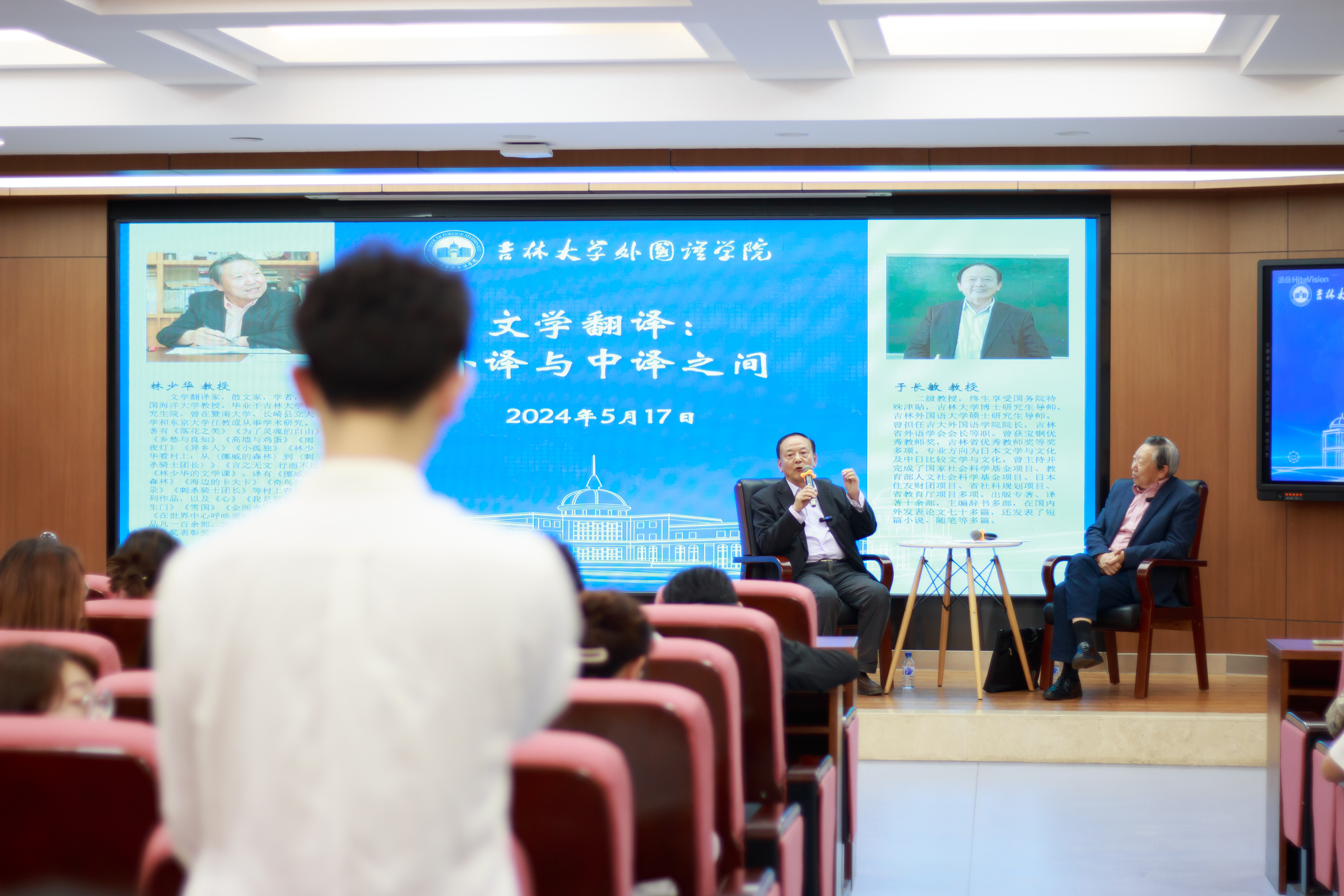 博士研究生导师、吉林外国语大学硕士研究生导师于长敏老师在外语楼500会议室开展了连续两晚的文学翻译专题讲座。讲座采用线上线下同步开展的形式,吸引了以成人导航