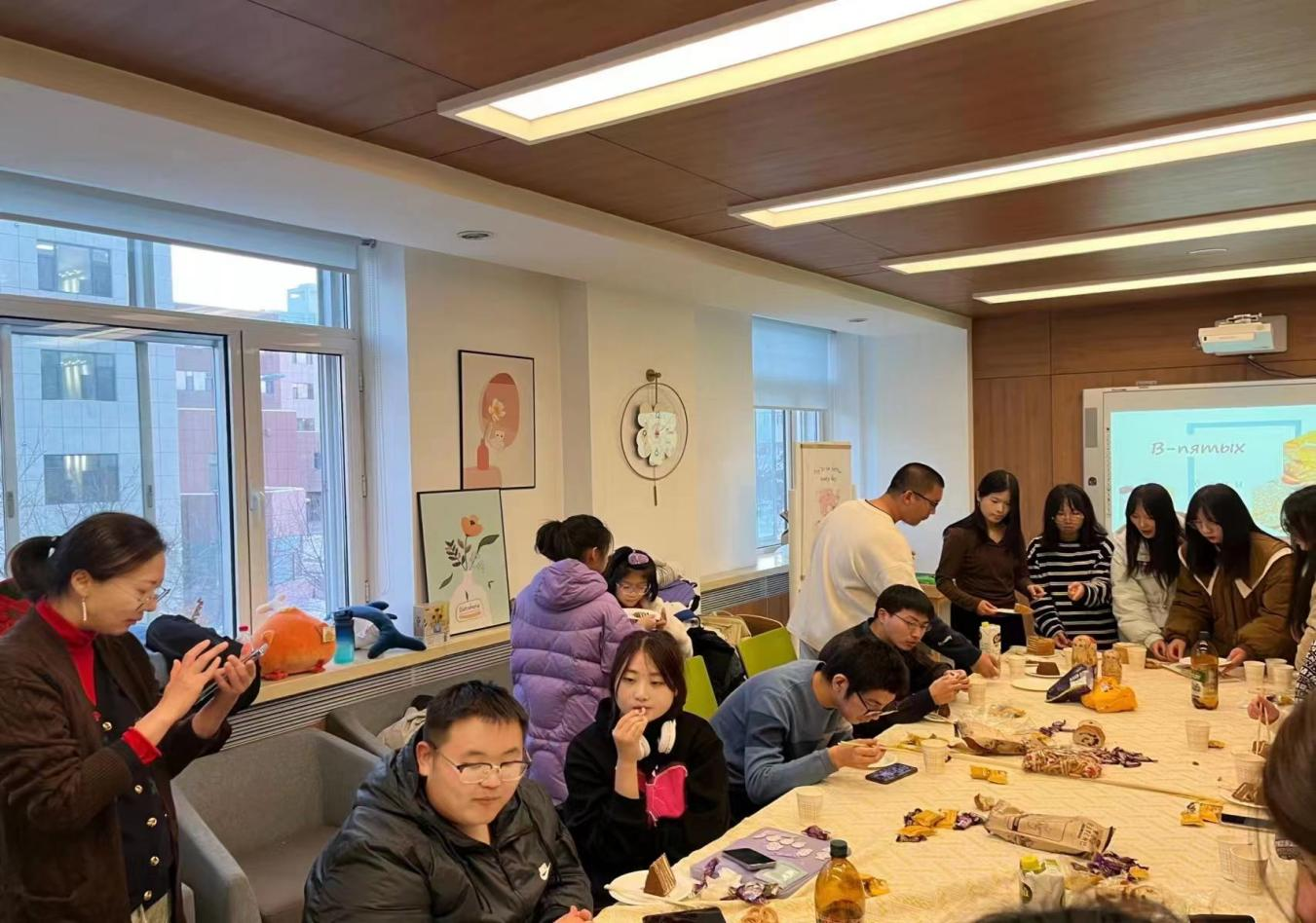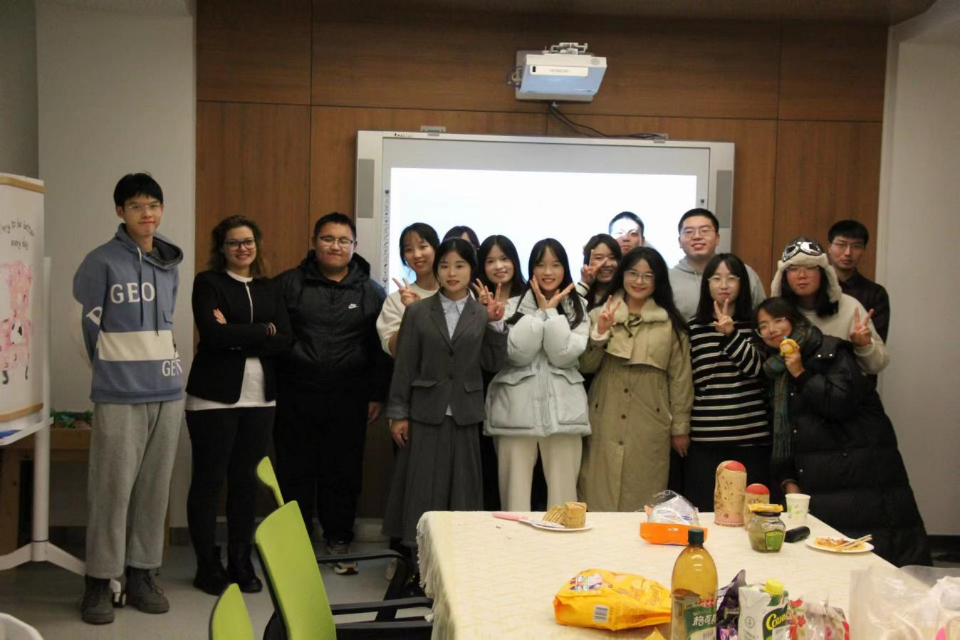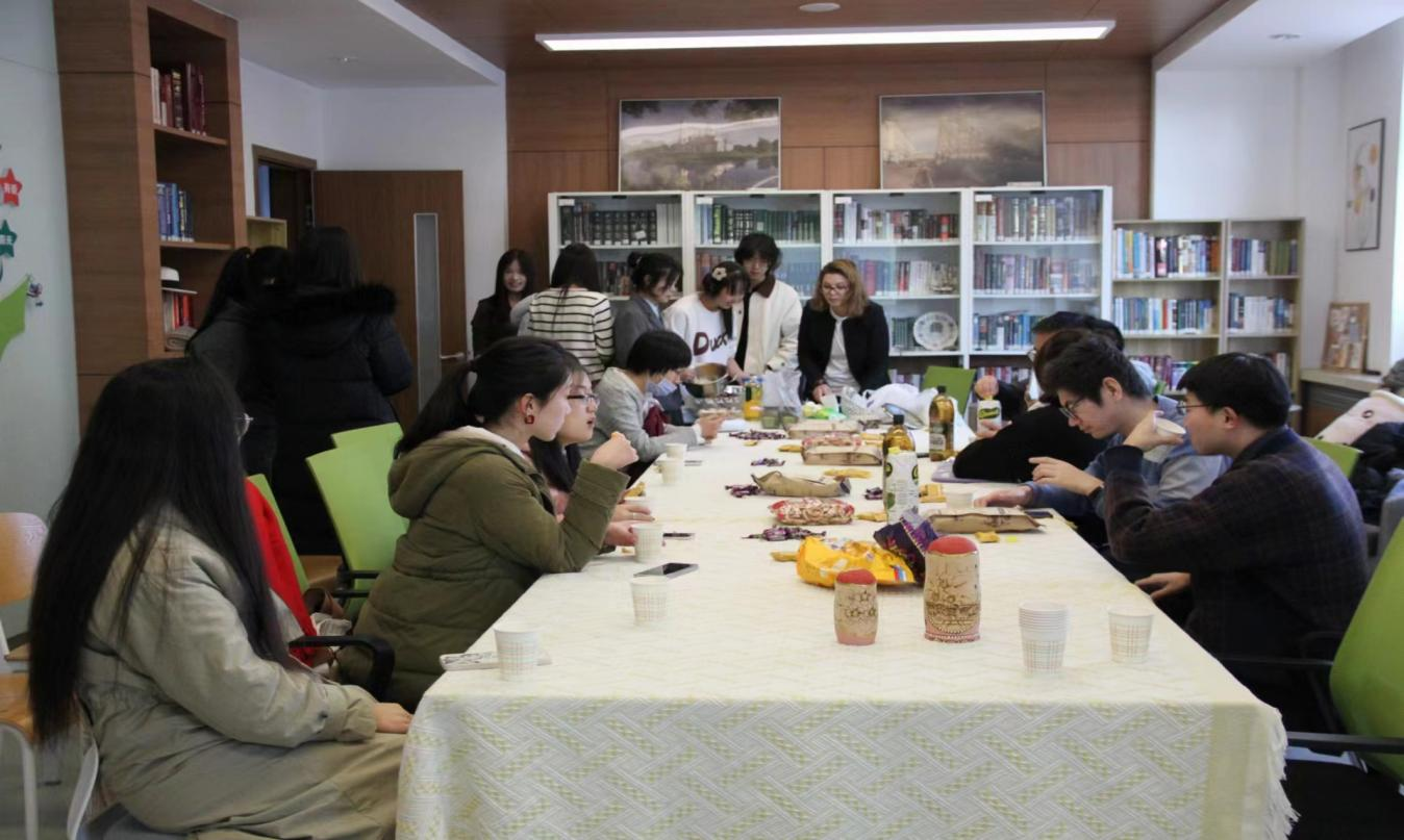 本次活动分为中俄文化差异讲解、文艺展示和俄罗斯美食制作三个部分。活动开始,陈小煜向同学们简要讲解了本次活动流程。随后,由朱思宇和朱朝洋进行中俄文化差异的知识讲解,在空闲时间里,同学们观看了俄语配音视频、聆听了俄罗斯歌曲、朗诵了俄罗斯诗歌。在知识讲解后,由俄文系俄罗斯籍教师Татьяна Плохова Михайловна分享了俄罗斯薄饼、沙拉的做法,同学们亲自体验了薄饼的制作过程,感受到了俄罗斯美食文化的魅力。老师现场教学、同学们积极参与,同时各位同学也对俄罗斯文化有了进一步了解。最后,同学们在轻松愉快的氛围下合影留念,为本次活动画上圆满的句号。